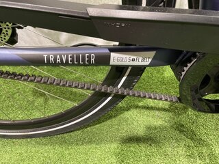 De TRAVELLER E-GOLD 5 PLUS BELT met zijn toerkarakter biedt veel rijplezier in het dagelijks leven en op tochten. Ontworpen rond de BOSCH Performance Line met hoog koppel, maakt de fiets indruk met een krachtige voortstuwing en een groot bereik met een batterij van 500 wattuur. Op voorwaarde dat de spanning correct is, heeft de GATES tandriemaandrijving geen enkel onderhoud nodig. Het stabiele golfframe met geïntegreerd bagagerek vergemakkelijkt het op- en afstappen. Hydraulische schijfremmen zorgen voor sportiviteit en zijn optimaal ontworpen voor stevige tochten. Met de SHIMANO 5-speed Nexus versnelling, die speciaal is ontwikkeld voor e-bikes, schakel je vrijwel zonder kracht van versnelling. De rechte zithouding, het prettig gevormde stuur en de verende voorvork zorgen voor comfortabel voortbewegen.