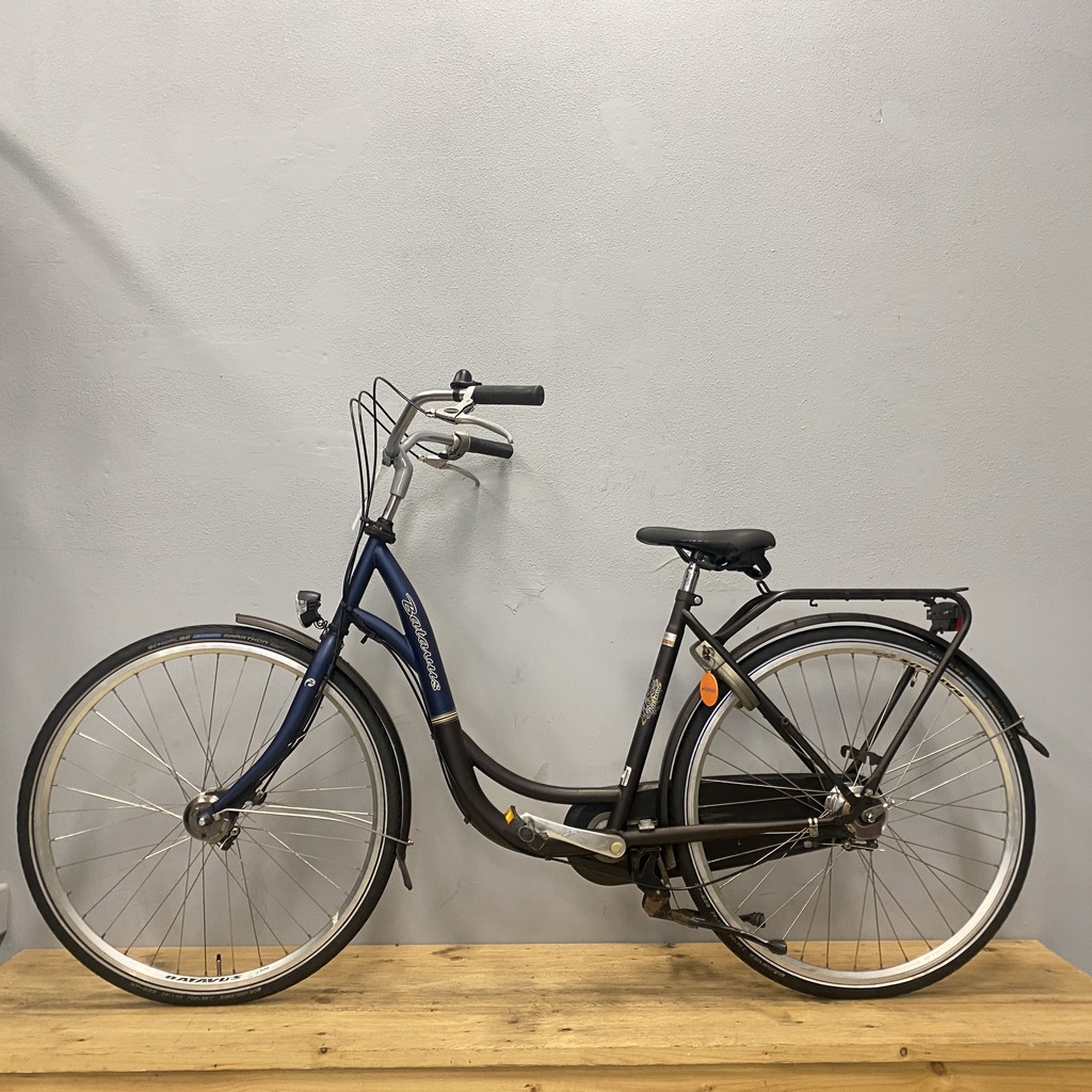 Fiets is compleet nagekeken. Voorzien van een nieuw zadel; achterlicht; handvatten en bel.