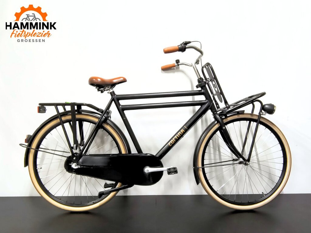 Nette tweedehands Cortina U4 Transport herenfiets met een framehoogte van 61 cm. Deze fiets heeft 3 versnellingen. Je ontvangt 3 maanden dealergarantie op deze stadsfiets.