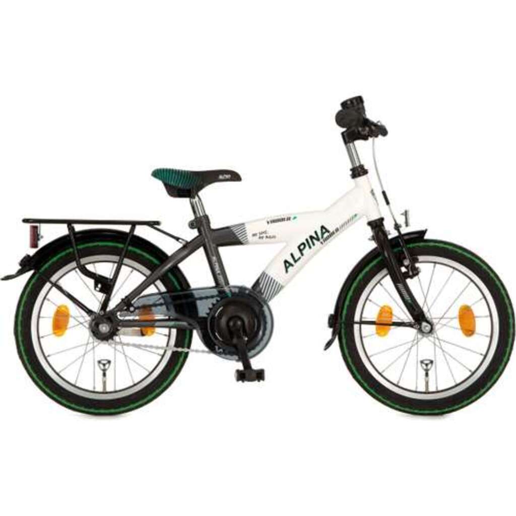 Alpina fiets Yabber Jongens, 18inch. Kleur: Pure White - Industrial Black. Uitgerust met achter een remnaaf en een V-brake voor, aluminium frame. Kleurnummers: RAL 9010 / PMS 10393 C Met.