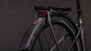 Onder de strakke, elegante lijnen van de CUBE Kathmandu Hybrid Comfort Pro 800 gaat een flink lading slimme technologie schuil. Zo is de Enviolo-naafversnelling traploos, wat betekent dat je eenvoudig draait totdat je de gewenste versnelling hebt – er is niet meer zoiets als een 'verkeerde' versnelling. Daarnaast is de fiets uitgerust met riemaandrijving. Nooit meer je ketting smeren, nooit meer gedoe. De Bosch CX-motor levert tot 90 newtonmeter trapondersteuning, waardoor elke route – zelfs die met heuvels – moeiteloos te rijden is. Met de 800 wattuur van de geïntegreerde PowerTube-accu hoef je je geen zorgen te maken over de actieradius. De krachtige hydraulische Shimano-schijfremmen doen hun werk onder alle weersomstandigheden en de luchtgeveerde Suntour-voorvork, verstelbare stuurpen en geveerde zadelpen bieden het nodige comfort. Gecombineerd met de Integrated Carrier 3.0 en een volledig pakket accessoires ben je klaar voor elk avontuur.