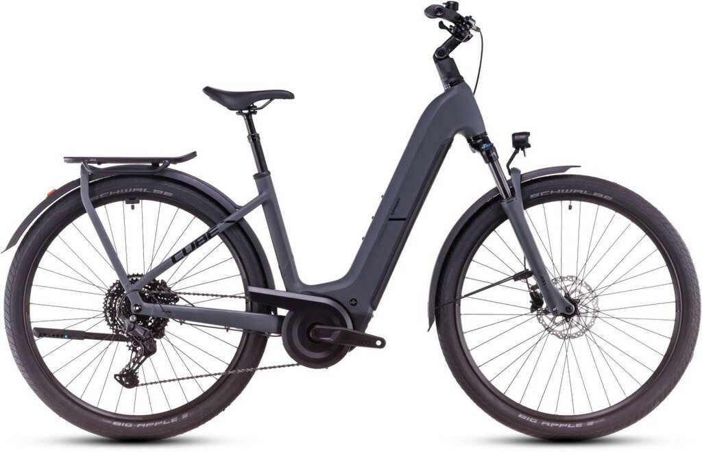 De CUBE Kathmandu Hybrid met lage instap is niet alleen makkelijk in het gebruik, maar ook een lust voor het oog. En dan zijn er nog de slimme innovaties en doordachte details. De fraai in het frame geïntegreerde Bosch CX-motor en 800 Wh PowerTube-accu vormen de basis. Weggewerkte kabels dragen bij aan de strakke lijnen. Onze befaamde Efficient Comfort-geometrie is ontwikkeld rondom een voorvork met 100 millimeter veerweg. Dat betekent dat je zelfs op ruwe wegen kunt rekenen op maximale controle. En dankzij de geïntegreerde IC 3.0-bagagedrager kun je alles meenemen wat je voor je avonturen nodig hebt. Praktisch: de UDH-achterpat is niet alleen degelijk, maar ook toekomstbestendig.