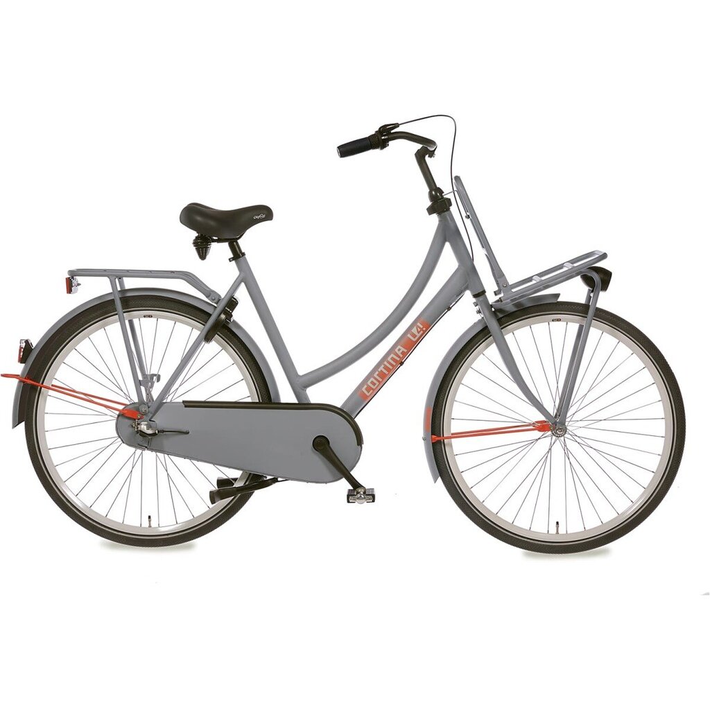 Cortina Transport U4 damesfiets in framemaat 57cm. Kleur: Stone Grey Matt. Uitgerust met achter een Shimano Nexus 3-traps versnellingsnaaf met terugtraprem en voor een standaard naaf. Opvallende details: aluminium frame, stuurslot, voordrager. Kleurnummer: UGSW 52508 Matt.