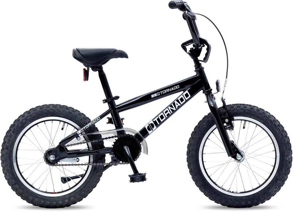 16" BMX Tornado in de kleur zwart Maximaal toelaatbaar gewicht: 80 kg Gewicht: ca. 14 kg Merk: TORNADO Wielmaat: 16" Kleur: zwart