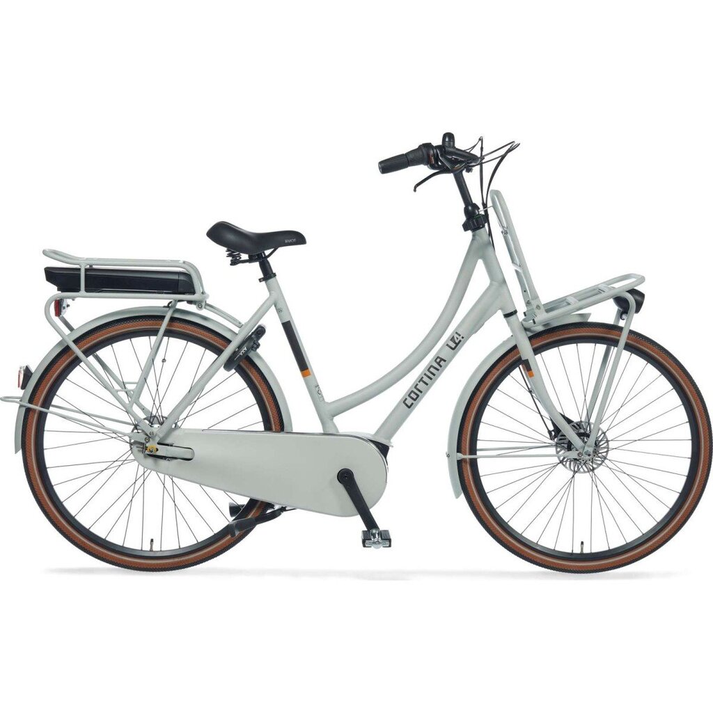 Cortina elektrische fiets Transport U4 Solid Dames 57cm, Smooth Grey Matt, Shimano Nexus 7 versnellingsnaaf, rollerbrakes voor en achter, Bosch ActiveLine systeem met middenmotor, wordt geleverd ZONDER accu en acculader. Kleurnummer: UGSW 90040 Matt.