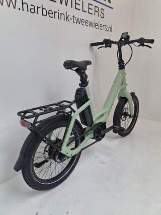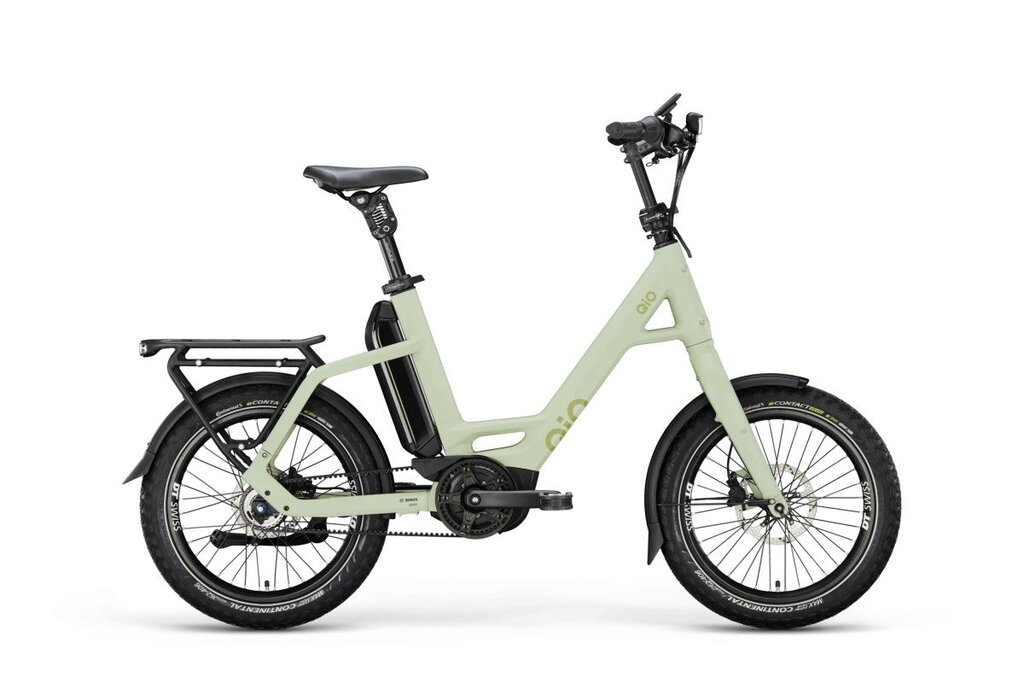 QiO Elektro-Kompaktrad "EINS P-5" (#1), 20", light olive matt ¦ Begin je dag ontspannen met de QiO 'EINS P-5' e-bike. Of het nu naar de bakker, door de velden of over de camping is - het slimme Bosch systeem (BES3) zorgt voor een volledig verbonden Fahrer. De 'EINS P-5' heeft de Bosch 'Performance Line' motor, een accu van 545 Wh en het 'Intuvia 100' display. De 5-speed Shimano 'Nexus' naafversnellingen en de onderhoudsarme Gates CDC riemen garanderen een soepele krachtoverbrenging. Met zijn 20' wielen is de e-bike wendbaar en ideaal voor smalle straten in de stad, waarbij de geveerde zadelpen veel comfort biedt en diefstalbestendig is. Het compacte ontwerp maakt hem gemakkelijk mee te nemen, in de auto of camper. De inklapbare pedalen en het draaibare stuur besparen ruimte. Ideaal voor forenzen die gewoon op pad willen.