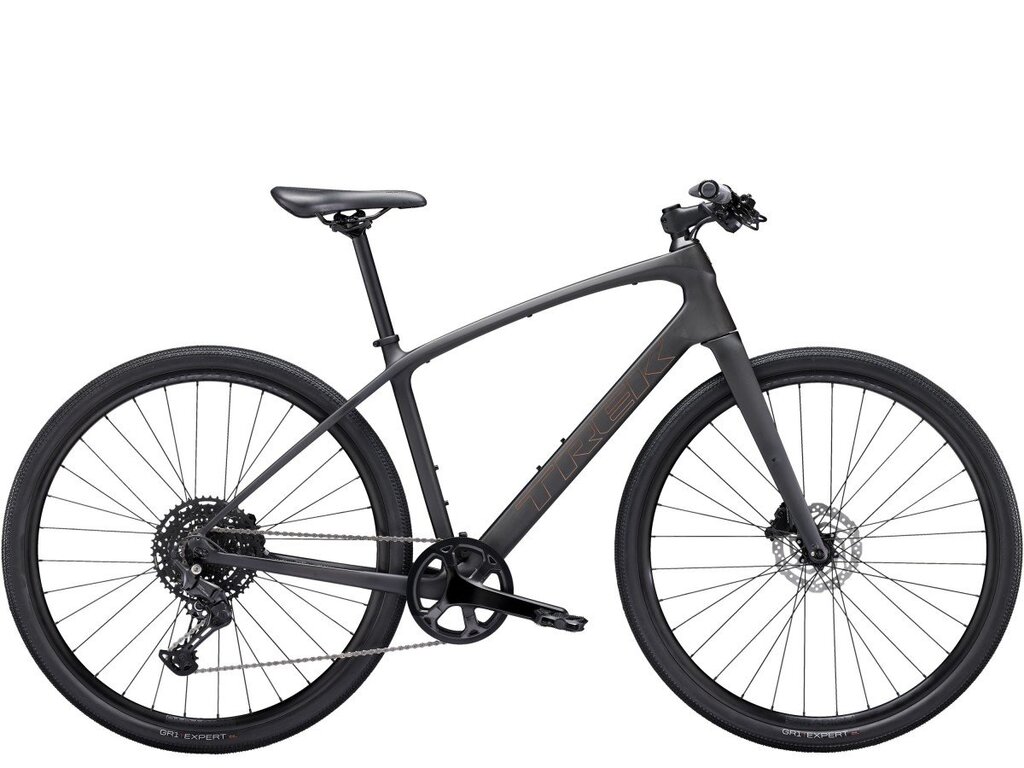 De FX Sport SL 4 is een carbon fitness-fiets voor rijders die de snelheid van een lichte racefiets willen met het comfort en de controle van een vlak stuur. De 1x-aandrijving vereenvoudigt het schakelen zonder dat het versnellingsbereik wordt ingeperkt. Daarom is deze uiterst sportieve fiets ideaal voor zowel solotrainingen als snelle groepsritten. Je bent klaar om flink kilometers te gaan maken en je prefereert het gevoel van een vlak stuur boven dat van een racestuur dat standaard gemonteerd zit op veel racefietsen. Voor jou zijn comfort en prestaties even belangrijk en je wilt de eenvoud van een 1x-aandrijfsysteem. Een lichtgewicht 400 Series OCLV Carbon frame en carbon voorvork, een Shimano CUES 10-speed aandrijving met breed versnellingsbereik, Shimano hydraulische schijfremmen voor weersonafhankelijke remkracht, een lichtgewicht tubeless ready wielset, brede, licht lopende Bontrager GR1 Expert gravelbanden en een trillingdempend stuur met ergonomische handvatten. Snel, capabel, comfortabel. De FX Sport SL 4 heeft een trillingdempend carbon frame en kwaliteitsonderdelen die probleemloos vele kilometers meegaan, inclusief het schakelgemak van de 1x-aandrijving. - De 1x-aandrijving heeft een breed versnellingsbereik en het gemak van een enkelvoudige shifter. - Je krijgt het superieure rijgevoel van carbon zonder dat je bankroet gaat. - Ik kom links voorbij! Deze fitness-fiets is meer dan geschikt om de snelle groepsritten bij te houden. - Je kunt hem gemakkelijk uitrusten met spatborden, verlichting en nog veel meer! 1x-aandrijving Een 1x aandrijving betekent eenvoudiger schakelen en minder kans op een technisch defect. Je hebt nog altijd een breed bereik aan verzetten, maar je schakelt lichter en intuïtiever. Alles wat je nodig hebt plus wat extra. Precies de goede geometrie De fonkelnieuwe FX Sport heeft een iets kortere reach en iets grotere stack dan de voorgaande modellen voor een comfortabele, maar toch actieve en snelle zitpositie. 400 Series OCLV Topprestaties voor een betaalbare prijs. De verschillende oppervlaktegewichten en vezelsamenstelling van het 400 Series OCLV carbon staan garant voor een waanzinnige snelheidssensatie en een uitstekende controle over de fiets.