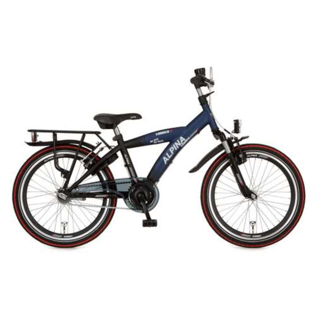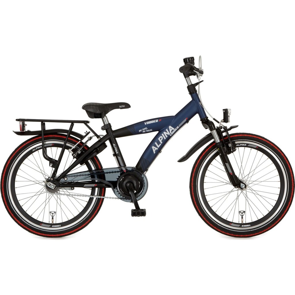 Alpina fiets Yabber Jongens, 20inch. Kleur: Sporty Blue Matt - Jet Black Metallic Matt. Uitgerust met V-brakes voor en achter en achter een remnaaf, aluminium frame. Kleurnummers: RAL 5026 Met Matt / RAL 9005 Met Matt.