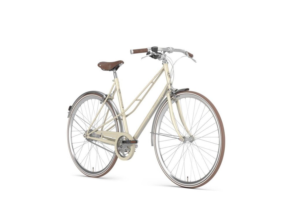 In het design van de Van Stael herleeft het gouden wielertijdperk van Gazelle. De slanke stalen buizen met lugs doen denken aan het befaamde Champion Mondial-koersframe en aan latere modellen als de Tour de France. De dunne racebandjes, het fraaie crankstel en de typische velgremmen maken het retroplaatje helemaal af. Stap op deze stijlvolle fiets en je waant je coureur. Pure nostalgie!