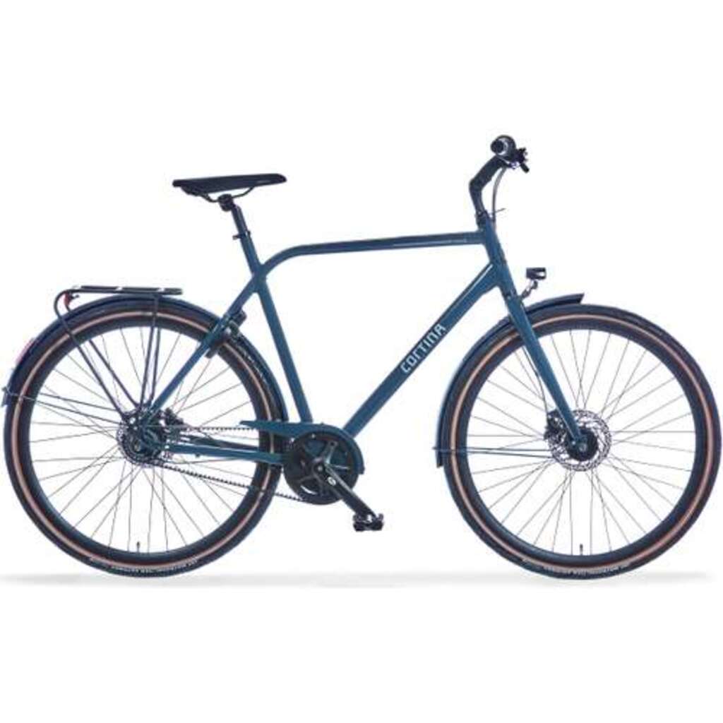 Cortina Mozzo herenfiets in framemaat 56cm. Kleur: Dark Green. Uitgerust met achter een Shimano Nexus 8-traps versnellingsnaaf met een hydraulische schijfrem en voor een Shimano naafdynamo met een hydraulische schijfrem. Opvallende details: aluminium frame, Gates beltdrive - type CDN en in spatbord geintegreerde achterverlichting. Kleurnummer: UGRW 44656.