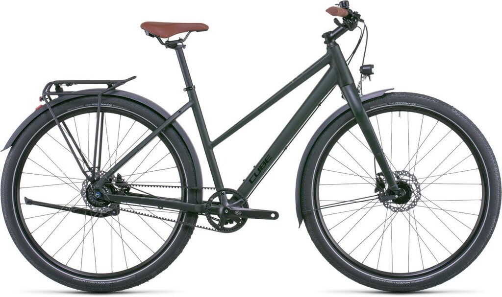 Het frame van de CUBE Travel Pro is gemaakt van dezelfde hoogwaardige materialen als onze mountainbikes: licht en sterk. Vreemd voor een reisfiets? Juist niet! De efficiëntie en stabiliteit die onze mountainbikes kenmerken komen ook op reis van pas. Ook aan ruimte voor dikke banden is gedacht, tot een breedte van 2.15”. Achter hebben we een stevige drager gemonteerd, de aluminium voorvork biedt desgewenst plek aan een lowrider. Een naafdynamo en een solide achterstandaard ronden het geheel af.