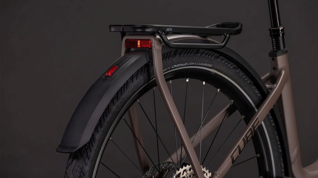 De CUBE Kathmandu Hybrid met lage instap is niet alleen makkelijk in het gebruik, maar ook een lust voor het oog. En dan zijn er nog de slimme innovaties en doordachte details. De fraai in het frame geïntegreerde Bosch CX-motor en 800 wattuur PowerTube-accu vormen de basis. Weggewerkte kabels dragen bij aan de strakke lijnen. Onze befaamde Efficient Comfort-geometrie is ontwikkeld rondom een voorvork met 100 millimeter veerweg. Dat betekent dat je zelfs op ruwe wegen kunt rekenen op maximale controle. Praktisch: de UDH-achterpat is niet alleen degelijk, maar ook toekomstbestendig. En dankzij de geïntegreerde IC 3.0-bagagedrager kun je alles meenemen wat je voor je avonturen nodig hebt.
