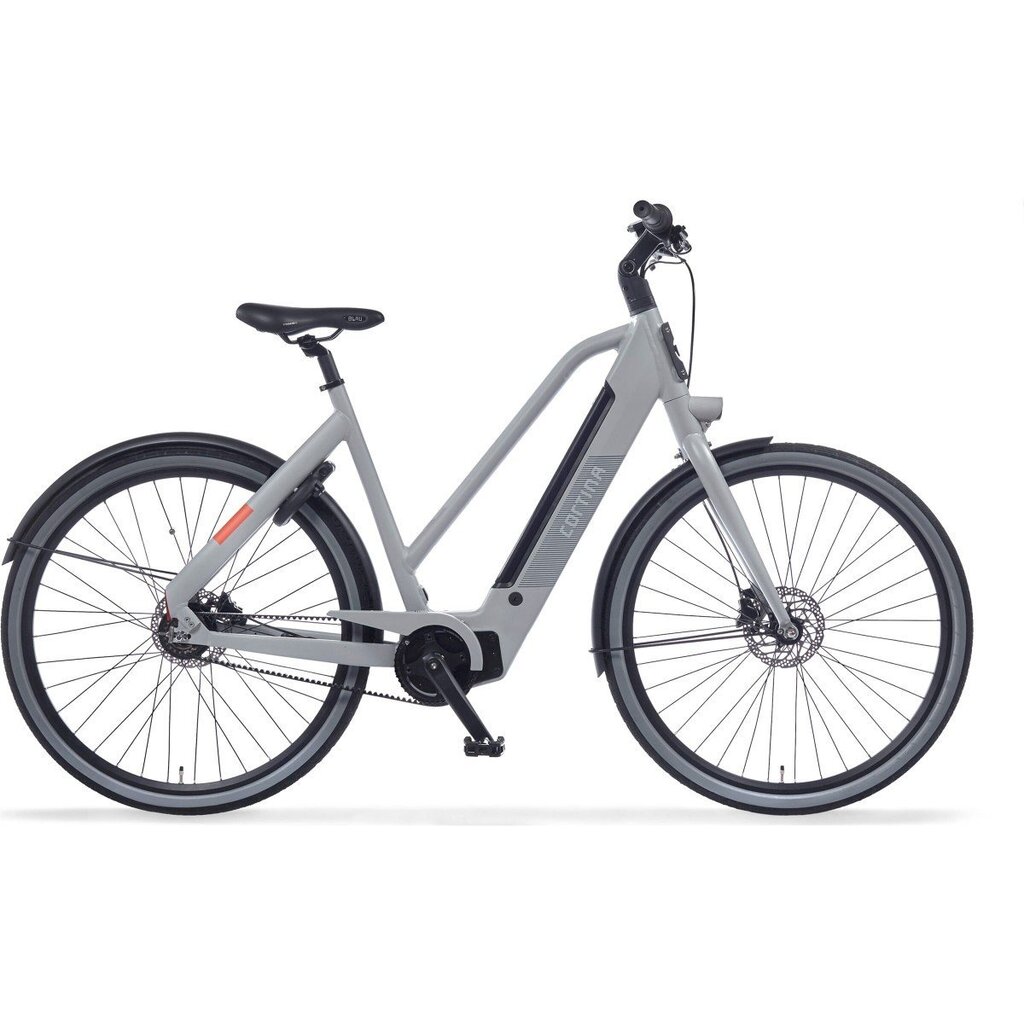 Cortina Blau elektrische damesfiets in framemaat 50cm. Kleur: Mouse Grey Matte. Uitgerust met achter een Shimano Nexus 8-traps versnellingsnaaf en met voor en achter MT200 hydraulische schrijfremmen. Werkt met een SportDrive 36v systeem met middenmotor. Opvallende details: aluminium frame, in frame geintegreerde accu en verlichting en Gates type CDX beltdrive. Wordt geleverd ZONDER accu en lader. Kleurnummer: UGSW 60429 Matte. Vergeet niet om op ‘samenstellen’ te drukken en de bijbehorende adapter, accu en lader ook te selecteren.