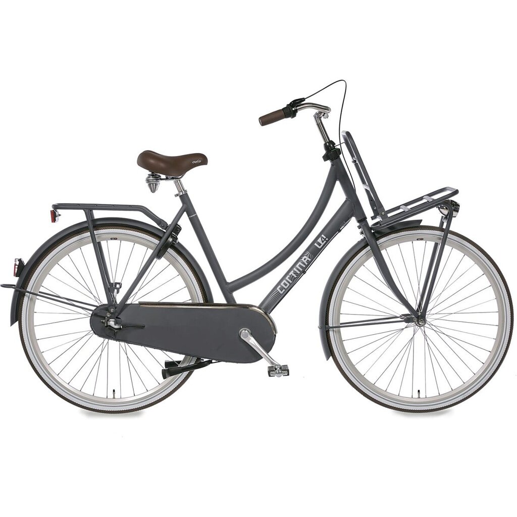 Cortina Transport U4 damesfiets in framemaat 57cm. Kleur: Wine Tasting Matt. Uitgerust met achter een Shimano Nexus 3-traps versnellingsnaaf met terugtraprem en voor een standaard naaf. Opvallende details: aluminium frame, stuurslot, voordrager. Kleurnummer: UVW 55082 Matt.