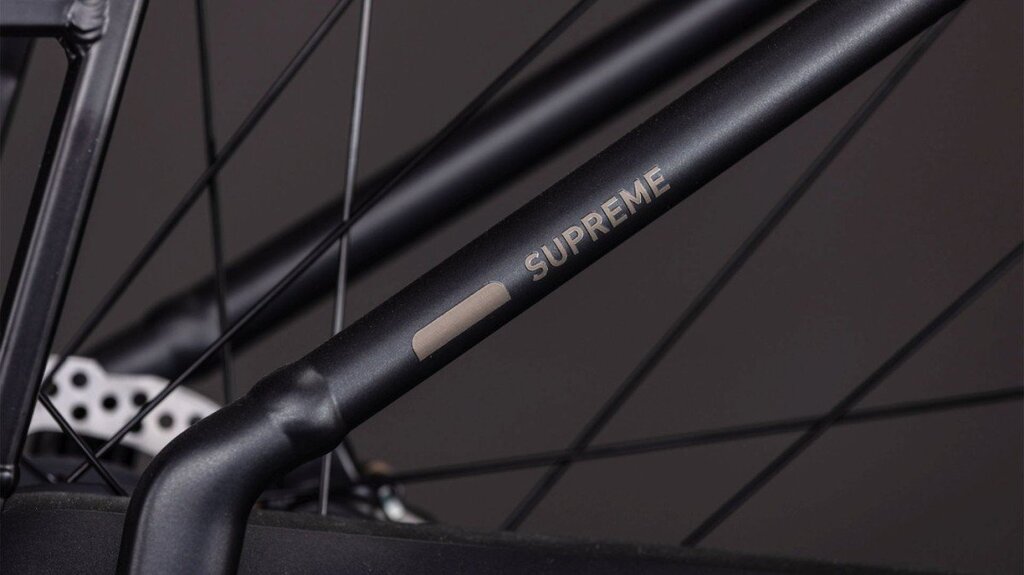 Sierlijk, veilig en praktisch: de Supreme Hybrid scoort op alle punten. Check bijvoorbeeld de fraaie gladde lasnaden. Of de schuine buis, waarin de 600-wattuuraccu van Bosch onzichtbaar is weggewerkt. Niet alleen mooi, maar ook erg praktisch. Zo is de lage instap ook écht een lage instap; niks zit in de weg. Maar het gaat natuurlijk niet alleen om de looks, maar ook om het rijgevoel. En met de maar liefst 100 newtonmeter trapkoppel waarover de Bosch PX-motor beschikt, moet dat vertrouwen wekken. De balhoofdbuis en de vorkbuis hebben daarom een grotere diameter, voor meer stuurprecisie en stabiliteit. En dat laatste geldt ook voor de semi-geïntegreerde IC2.0-bagagedrager. Twee fietstassen vol boodschappen? De Supreme Hybrid geeft geen krimp. We hebben 'm van maat 42 tot maat 58.