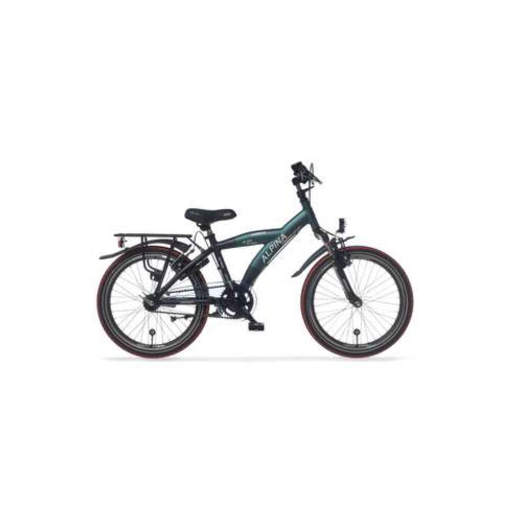 Alpina fiets Yabber Jongens, 20inch. Kleur: Pine Green Matt - Vivid Black Matt. Uitgerust met V-brakes voor en achter en achter een remnaaf, aluminium frame. Kleurnummers: YS 7687 + YS 7799 Matt.