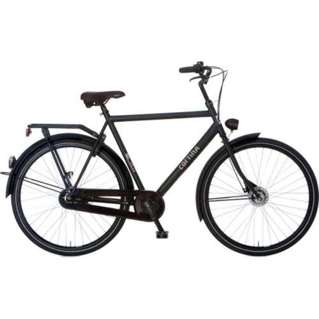 Cortina U1 Herrenfahrrad in Rahmenhöhe 61cm. Farbe: Black Matt. Ausgerüstet hinten mit Shimano Nexus 3-Gang Nabenschaltung mit Rollerbrake und vorne mit Shimano Nabe mit Rollerbrake.
