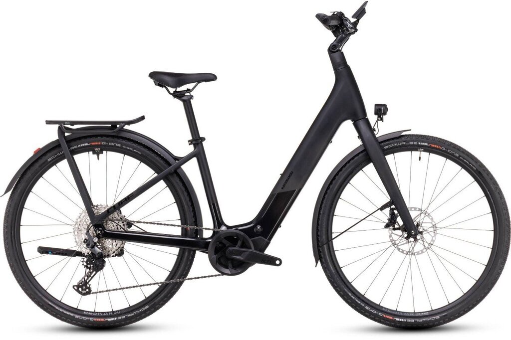 Het frame met lage instap van de Kathmandu Hybrid C:62 SLX Easy Entry is niet alleen praktisch, maar het is ook een technisch hoogstandje. We hebben het geconstrueerd van ons hoogwaardige C:62-carbon, voor de beste combinatie van sterkte (hoog) en gewicht (laag). Uiteraard is de 400 Wh accu geïntegreerd in het frame; dat is niet alleen mooi, maar beschermd ook de accu. Dat geldt eveneens voor de kabelgeleiding door het frame heen. De geïntegreerde IC 3.0 bagagedrager is een andere highlight; sterk, veelzijdig en natuurlijk ook gewoon mooi. Een carbon voorvork garandeert nauwkeurig sturen, moderne Boost-assen zorgen voor stabiliteit, zelfs bij volle bepakking. Er zit zelfs een toekomstbestendige UDH-derailleurhanger op. Je ziet het, we hebben aan alles gedacht.