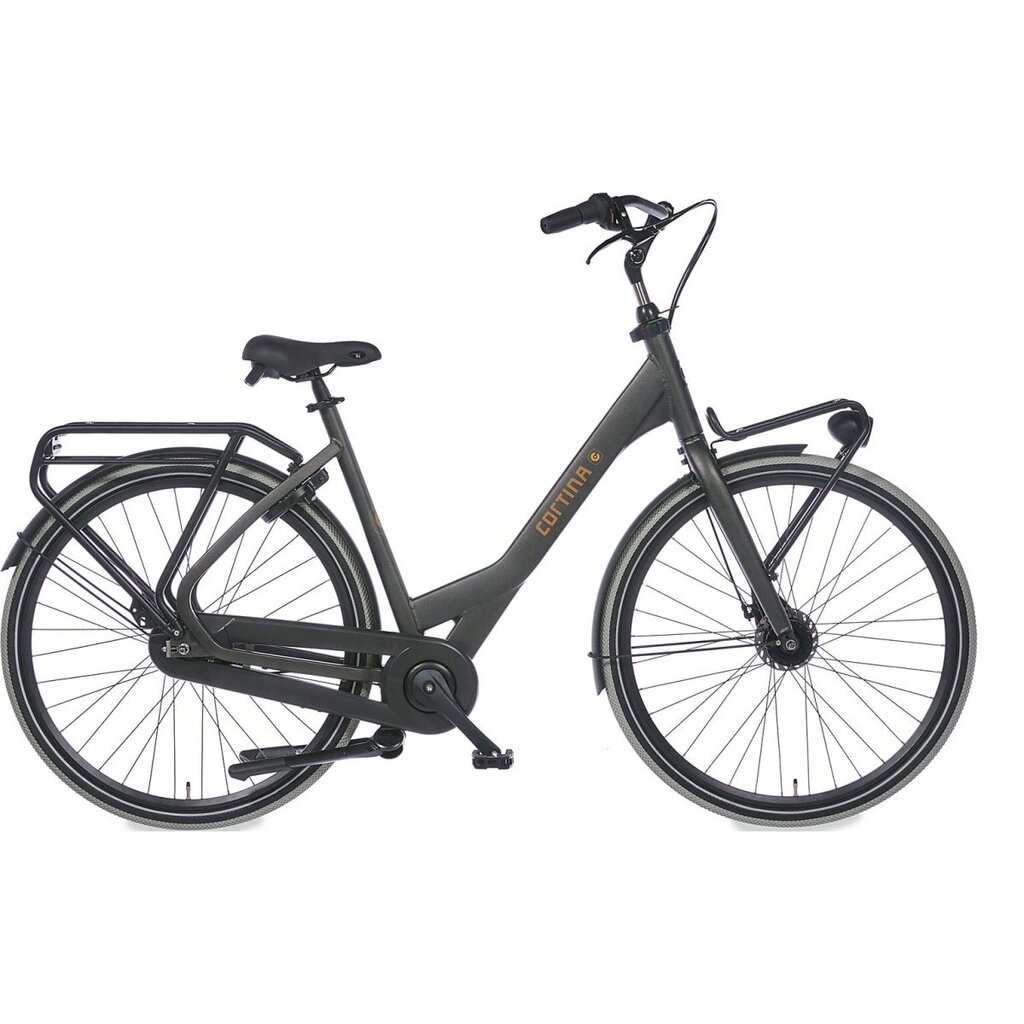 Cortina Common Family 57cm, Black Gold Matte, Shimano Nexus 7 versnellingsnaaf, Rollerbrakes voor en achter. Kleurnummer: MZZ 28357 Matte.