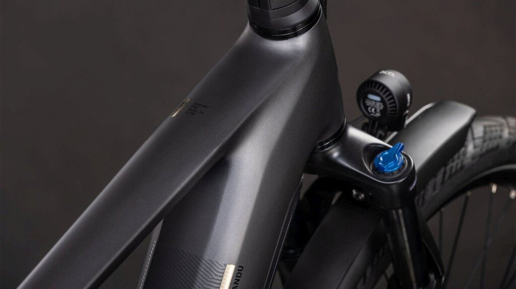 Het ontwerp van de CUBE Kathmandu Hybrid is klassiek elegant, maar zit desondanks vol slimme innovaties en doordachte details. De fraai in het frame geïntegreerde Bosch CX-motor en 800 wattuur PowerTube-accu vormen de basis. Weggewerkte kabels dragen bij aan de strakke lijnen van het frame. Onze befaamde Efficient Comfort-geometrie is ontwikkeld rondom een voorvork met 100 millimeter veerweg. Dat betekent dat je zelfs op ruwe wegen kunt rekenen op maximale controle. Praktisch: de UDH-achterpat is niet alleen degelijk, maar ook toekomstbestendig. En dankzij de geïntegreerde IC 3.0-bagagedrager kun je alles meenemen wat je voor je avonturen nodig hebt.